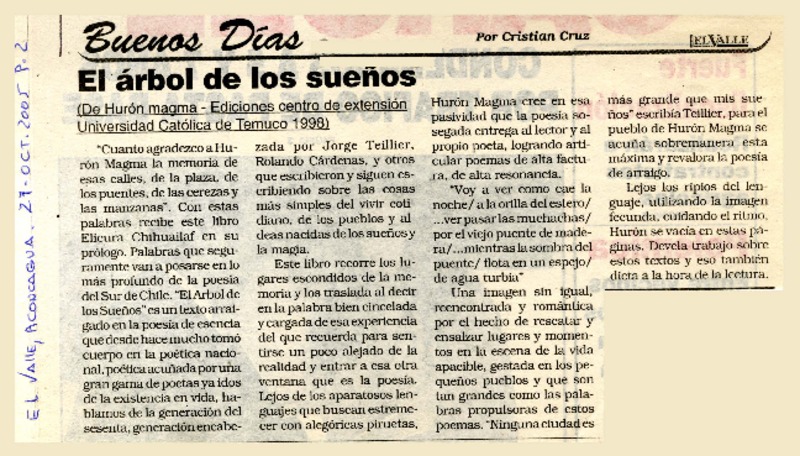 El árbol de los sueños [artículo] por Cristian Cruz.