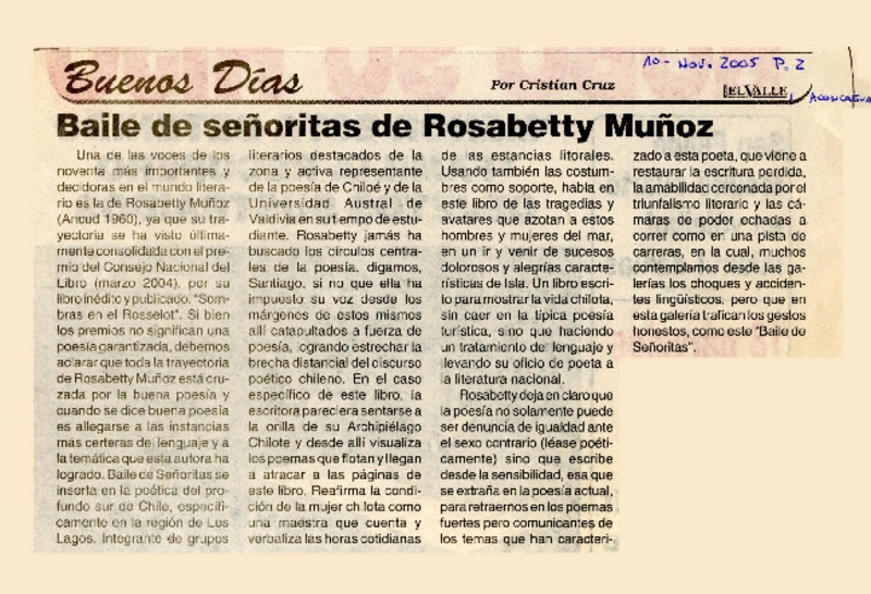 Baile de señoritas de Rosabetty Muñoz [artículo] por Cristian Cruz.