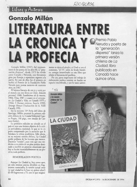 La Nueva "Ciudad" de Gonzalo Millán [artículo].