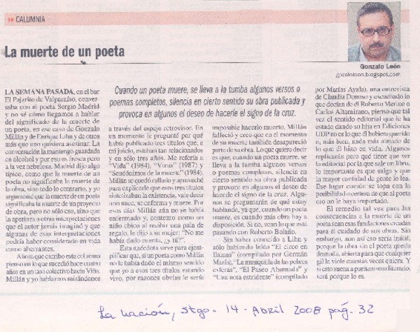 La muerte de un poeta [artículo]Gonzalo León.