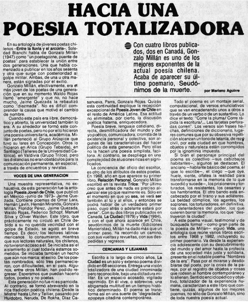 "Relación personal", poemas de Gonzalo Millán. [artículo]