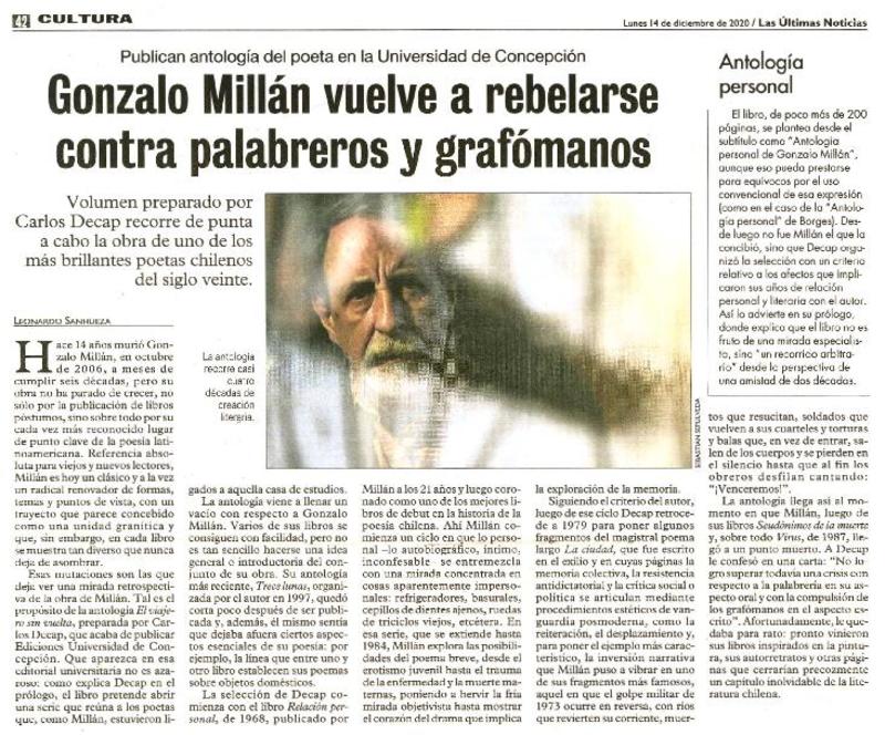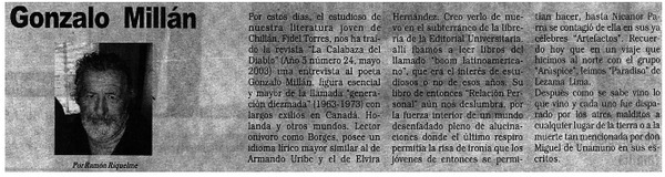 Gonzalo Millàn, a cinco años de su muerte [artículo] Matìas Rivas.