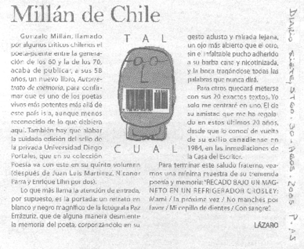 Millán de Chile. [artículo] Lázaro