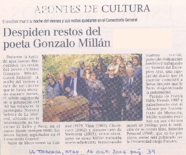 Despiden restos del poeta Gonzalo Millán [artículo]