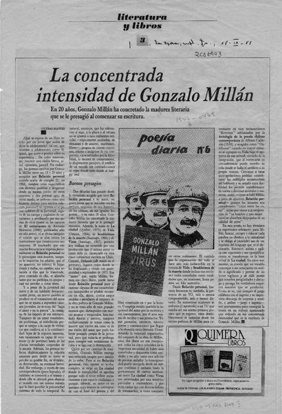 La concentrada intensidad de Gonzalo Millán [artículo] Soledad Bianchi.