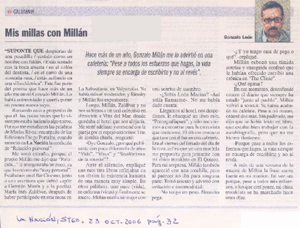 Mis millas con Millán [artículo] Gonzalo León.