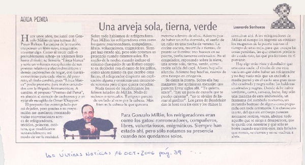 Una arveja sola, tierna, verde [artículo] Leonardo Sanhueza.