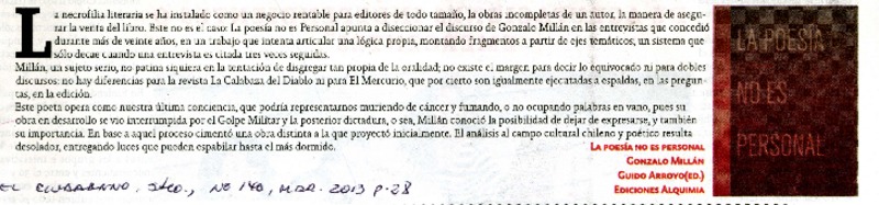 Autores chilenos - Millán, Gonzalo - La poesía no es personal