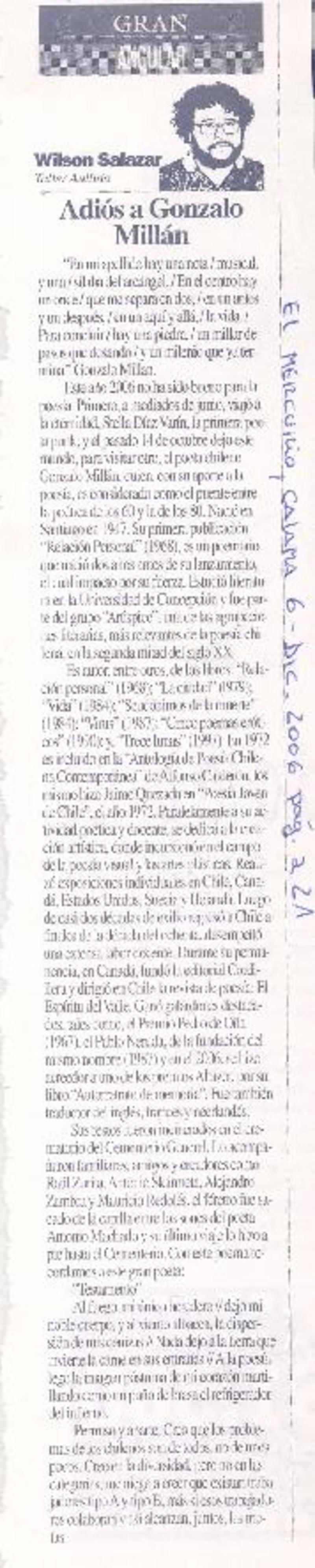 Gonzalo Millán [artículo] Ramón Riquelme.