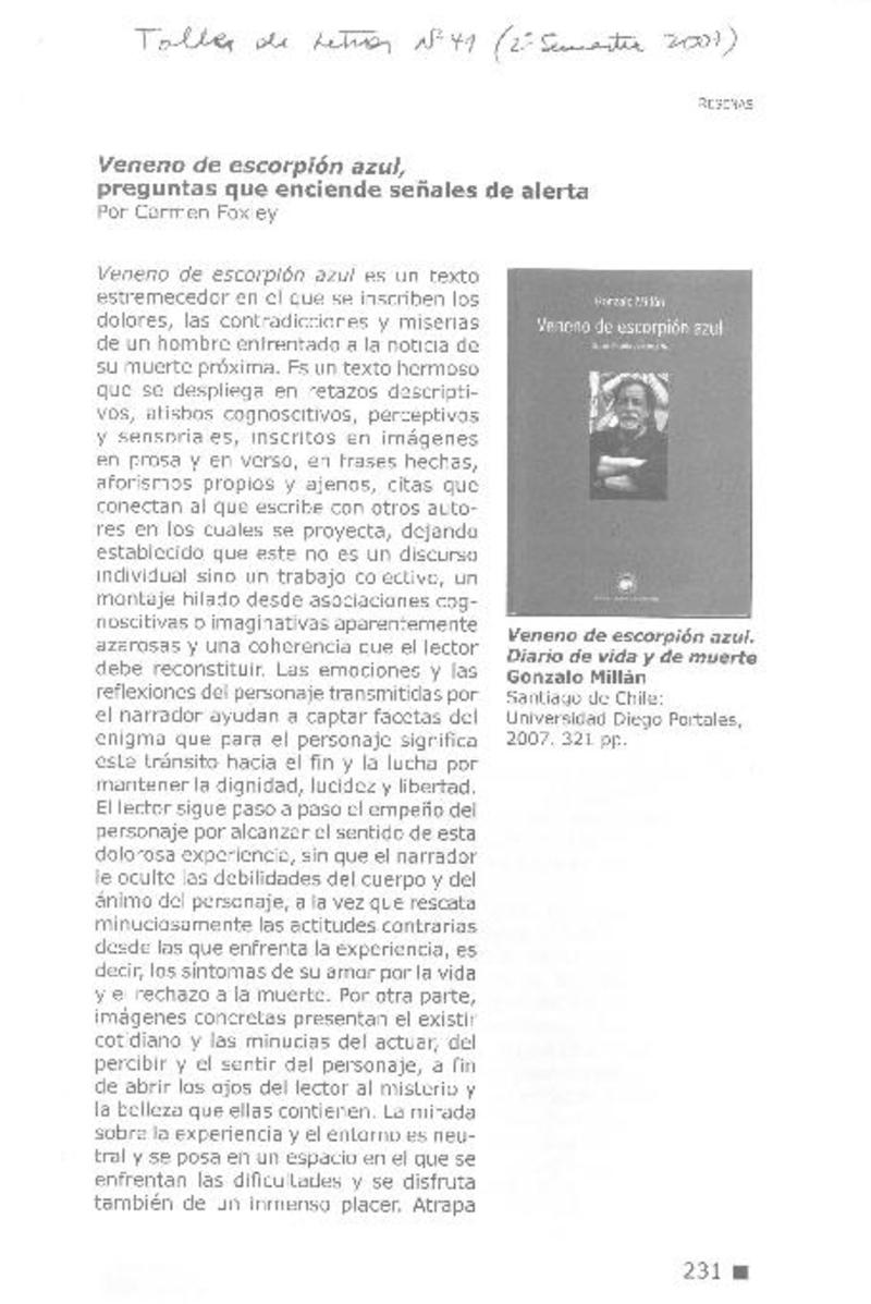 Veneno del escorpión azul [artículo] Carmen Foxley.