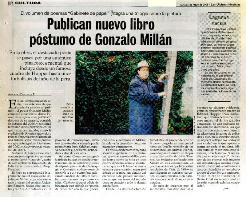 Publican nuevo libro póstumo de Gonzalo Millán [artículo]Alfonso Cortínez T.