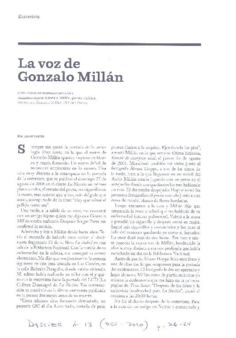 La voz de Gonzalo Millán (entrevista) [artículo] Javier García.