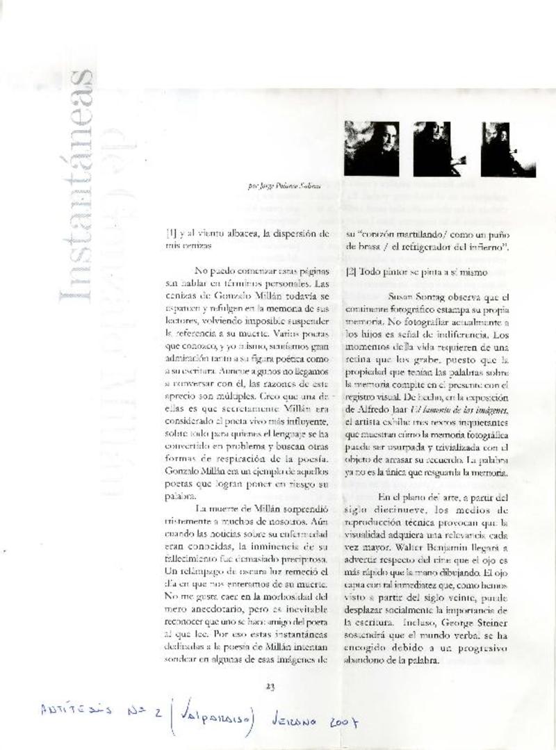 Instantáneas de Gonzalo Millán [artículo] Jorge Polanco Salinas.