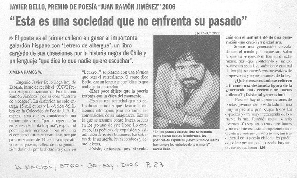 "Esta es una sociedad que enfrenta su pasado" [artículo] Ximena Ramos W.