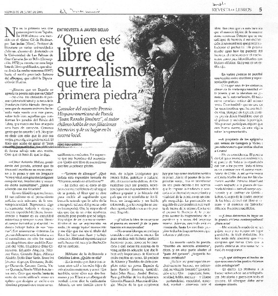 "Quien esté libre de surrealismo que tire la primera piedra" [entrevista] [artículo] Pedro Pablo Guerrero.
