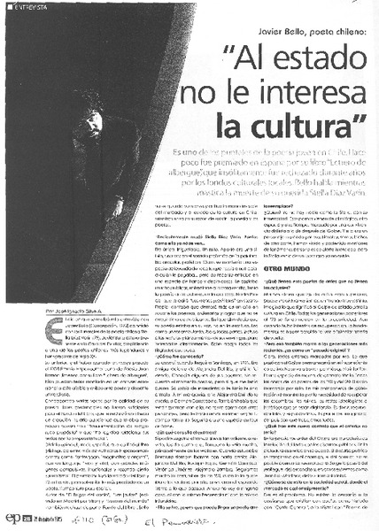 "Al estado no le interesa la cultura" [entrevista] [artículo] José Ignacio Silva A.