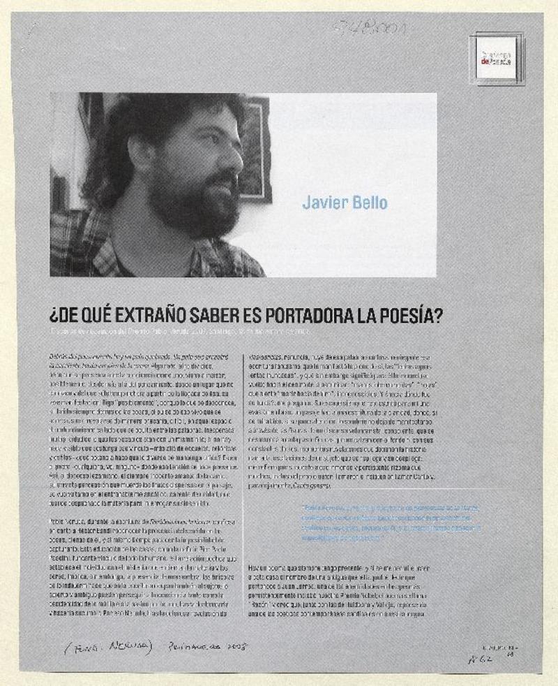 ¿De qué extraño saber es portadora la poesía? [artículo] Javier Bello.