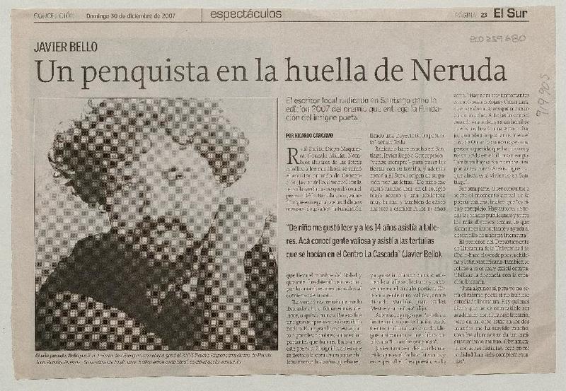 Un penquista en la huella de Neruda [artículo]Ricardo Cárcamo