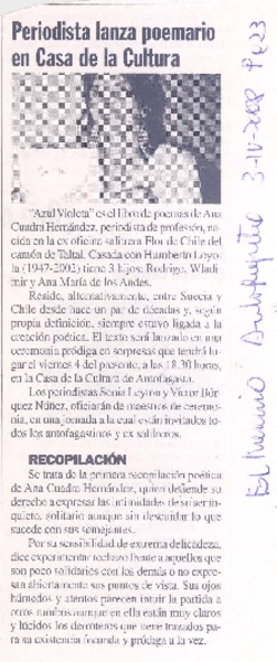 Periodista lanza poemario en Casa de la Cultura [artículo].