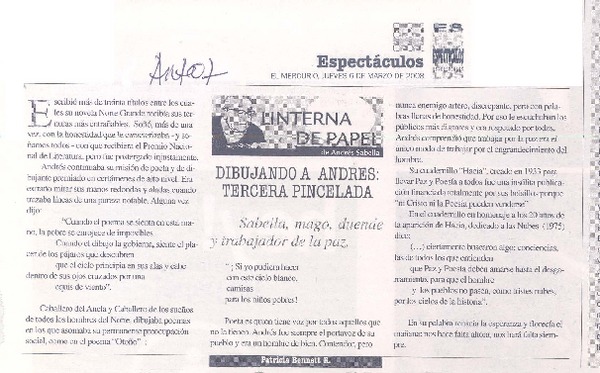 Dibujando a Andrés: Tercera pincelada [artículo]Patricia Bennet R.