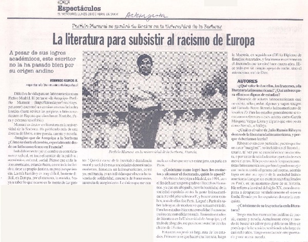 La literatura para subsistir al racismo de Europa (entrevista) [artículo]Rodrigo Ramos.