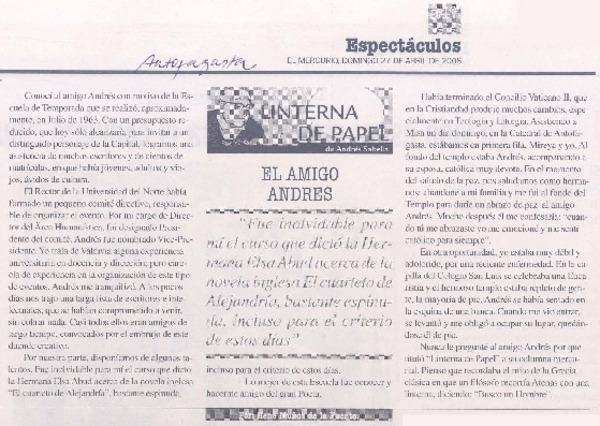 El amigo Andrés [artículo]Rene Muñoz de la Fuente.