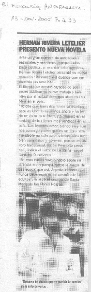 Hernán Rivera Letelier presentó nueva novela. [artículo]