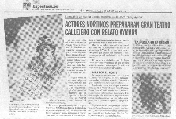 Actores nortinos prepararán gran teatro callejero con relato aymara [artículo]