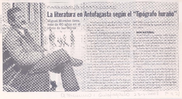 La Literatura en Antofagata según el "Tipógrafo huraño" [artículo].