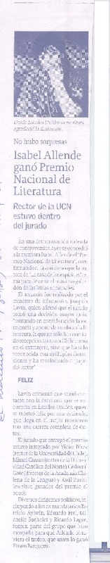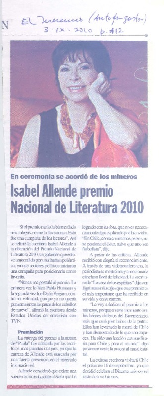 Isabel Allende premio Nacional de Literatura 2010 [artículo].
