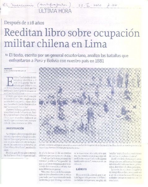 Reeditan libro sobre ocupación militar chilena en Lima [artículo].