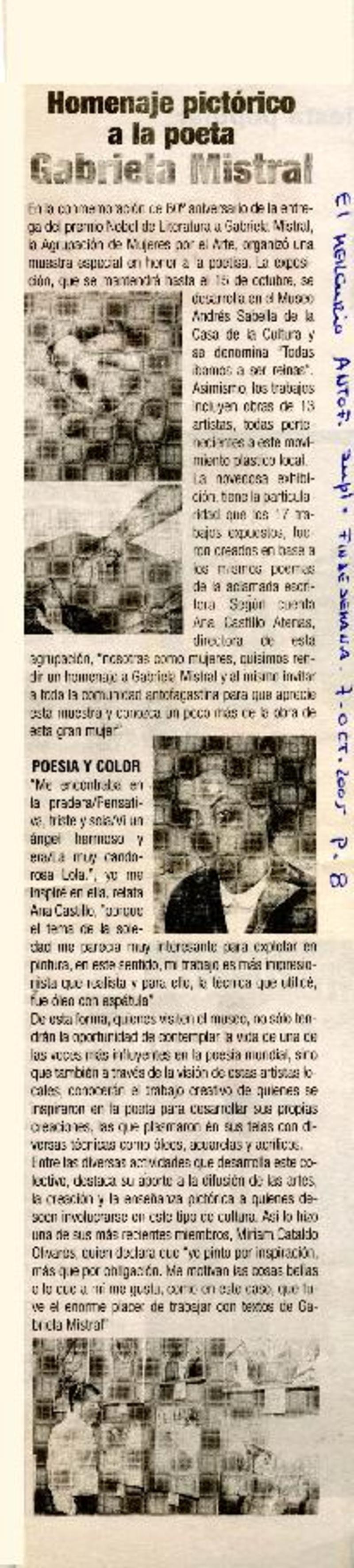 Homenaje pictórico a la poeta Gabriela Mistral [artículo].