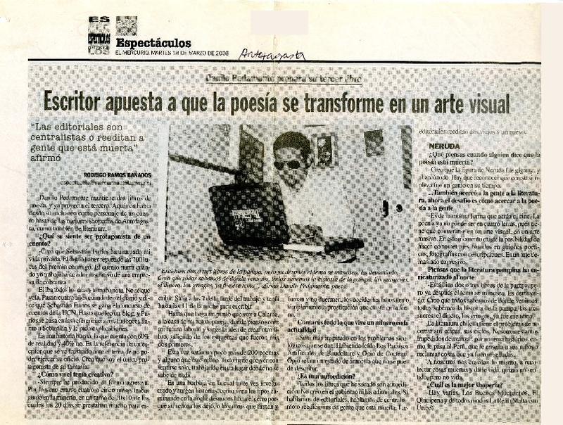 Escritor apuesta a que la poesía se transforme en un arte visual (entrevista) [artículo]Rodrigo Ramos Bañados.