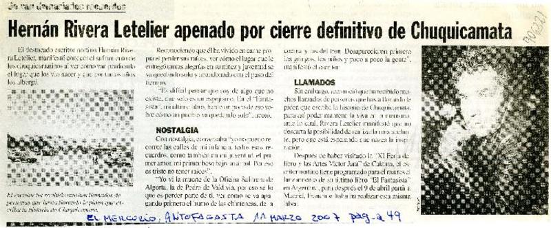 Hernán Rivera Letelier apenado por cierre definitivo [artículo].
