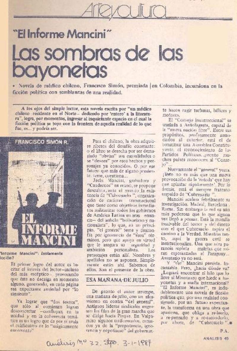 Autores chilenos - Simón, Francisco - Infomre mancini