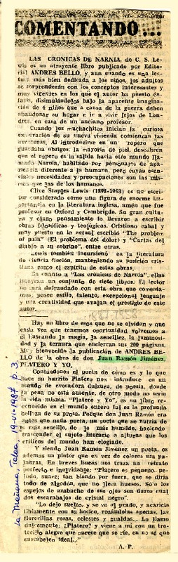 Los pájaros en ¨Platero¨" [artículo] María del Carmen Pallares.