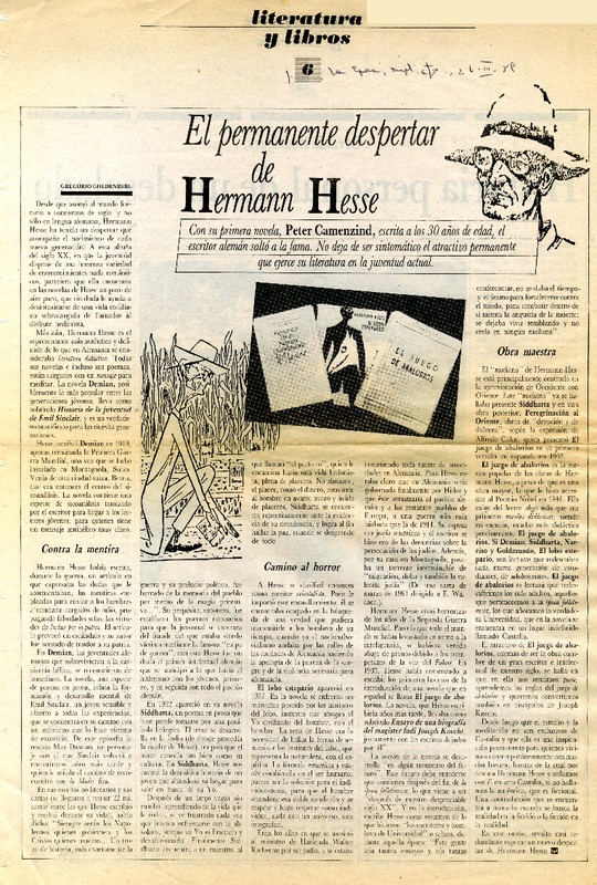 El Permanente despertar de Hermann Hesse [artículo]Gregorio Goldenberg.