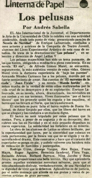 Autores chilenos - Lafourcade, Enrique - Novela de Navidad - Lattus, Angel - Pelusas (adaptación)