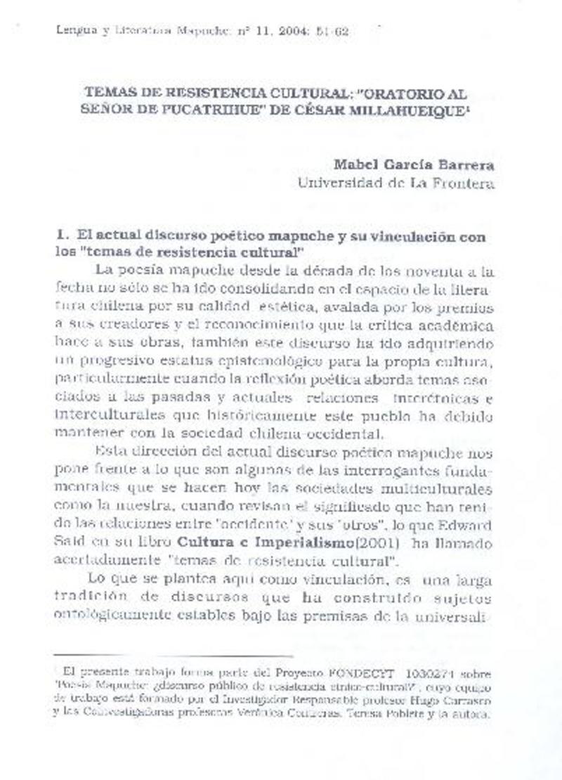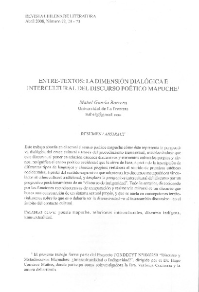 Entre-textos: la dimensión dialógica e intercultural del discurso poético mapuche [artículo] Mabel García Barrera.