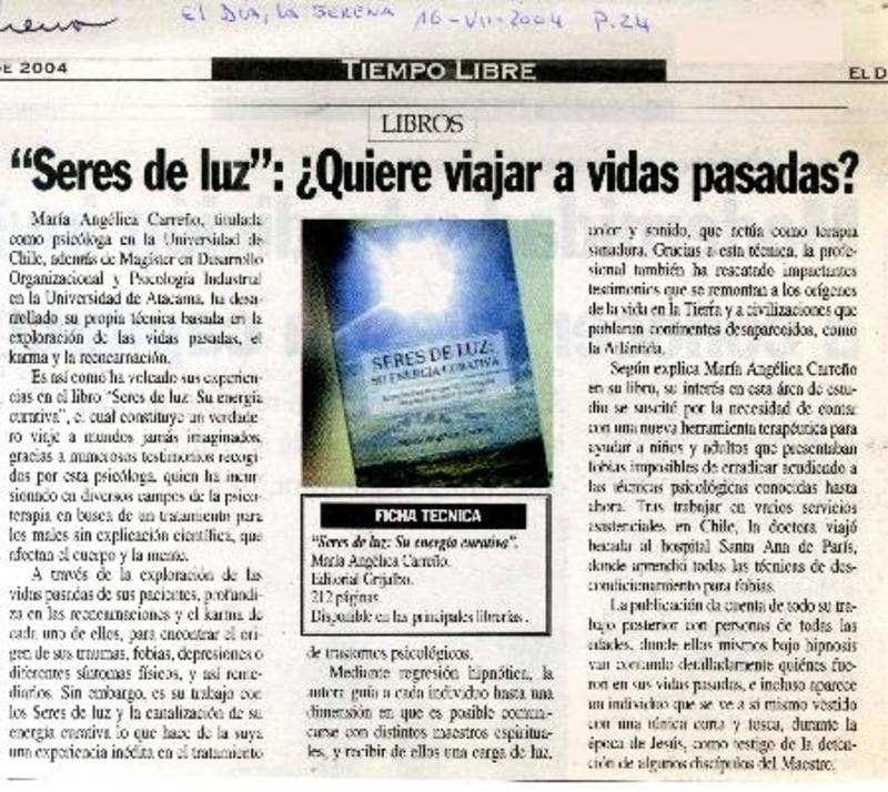 "Seres de luz" : ¿Quieres viajar a vidas pasadas? [artículo]