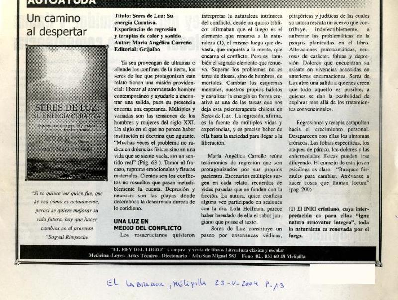 Seres de luz : su energía curativa [artículo] Gloria Guerra.