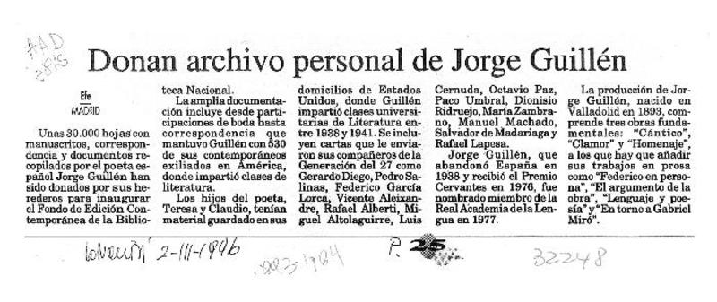 Donan a España cartas del escritor Jorge Guillén [artículo]