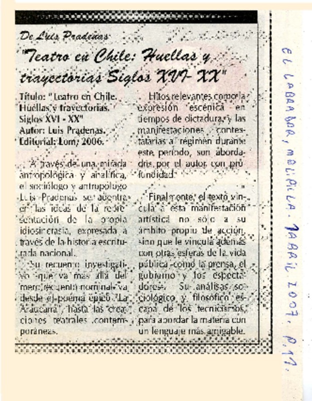 Autores chilenos - Teatro en Chile - Pradenas, Luis