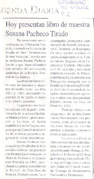 Hoy presentan libro de maestra Susana Pacheco Tirado [artículo].