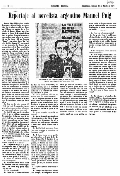 Autores argentinos - Puig, Manuel - Traición de Rita Hayworth