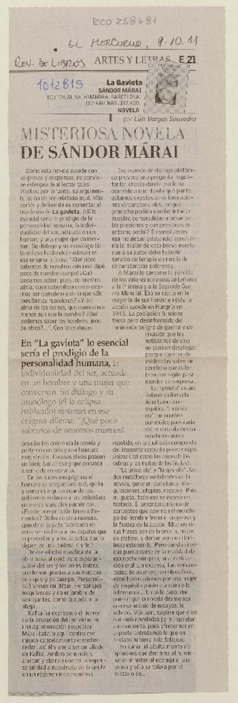 La novela moderna española [artículo] Andrés Cáceres Milnes.