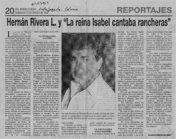 Hernán Rivera L. y "La Reina Isabel cantaba rancheras" [artículo] Mario Cortés Flores.