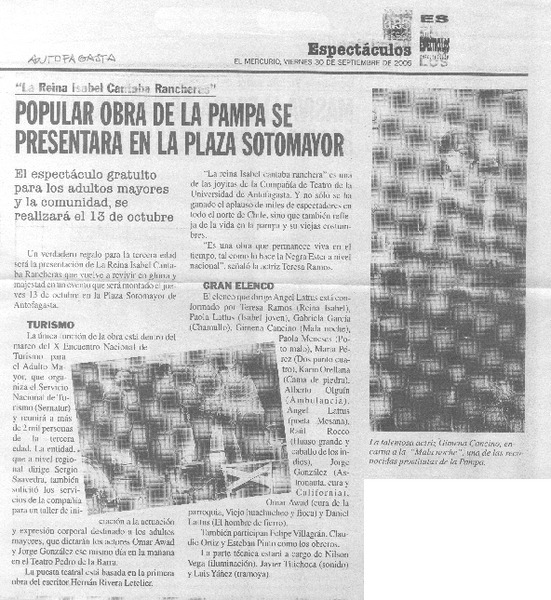 Popular obra de la pampa se presentará en la Plaza Sotomayor. [artículo]
