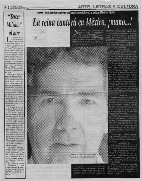 Autores chilenos - Entrevistas - Rivera Letelier, Hernán - La Reina Isabel cantaba rancheras