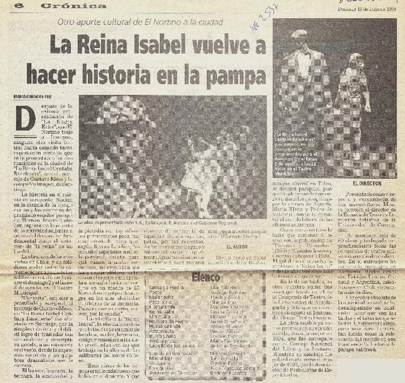 La Reina Isabel vuelve a hacer historia en la pampa [artículo] Mario Córdova Fre.